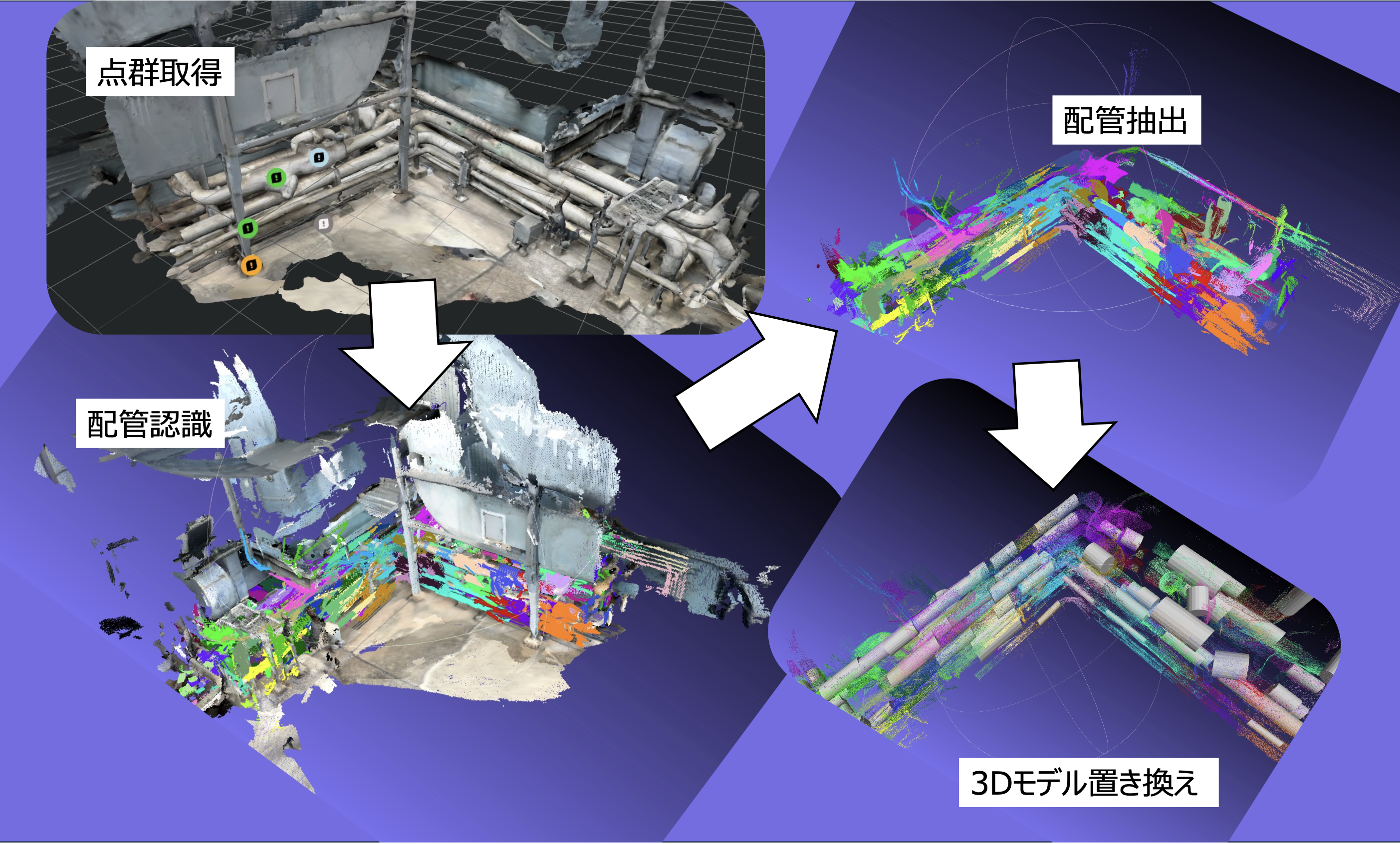 点群データを単なる「点」の集まりで終わらせず、「使える情報」へと進化させる、そんな役割を担っています。